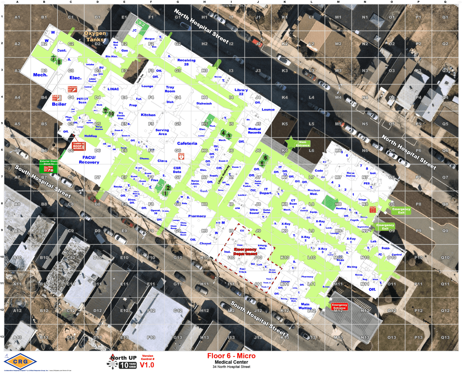 Each medical facility has its own system of room numbers, stairwell delineation, hazardous chemical storage areas, and much more. By relying on CRGs, hospitals, clinics and ALFs can ensure clear coordination with first responders.
